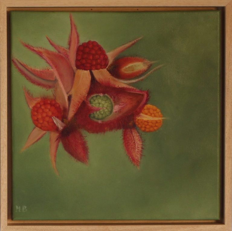 De metamorfose van de Japanse wijnbes. Van de bloei naar de beginnende en rijpende vrucht.