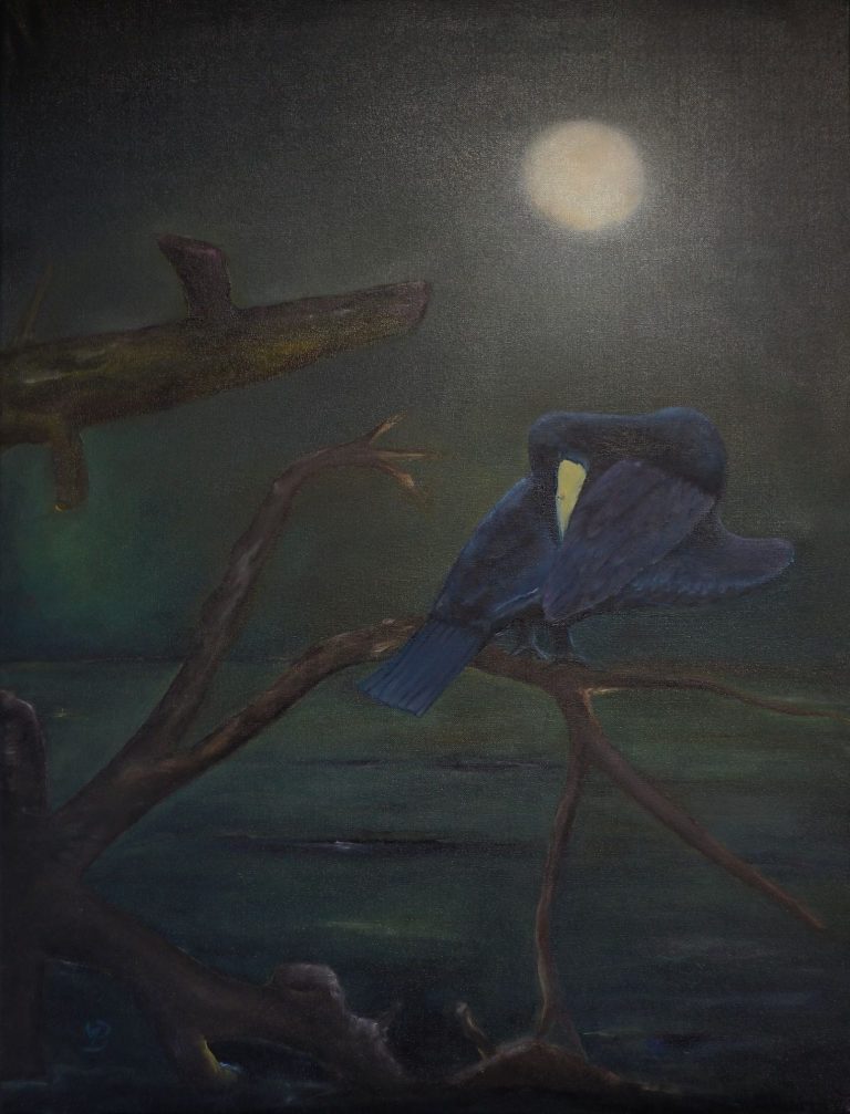Aalscholver in maanlicht